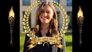 The Philosopher Muse presents Dr. Esther Braun with the golden laurel wreath for her outstanding work as an academic and champion of justice and liberty, thereby bestowing upon her the title ‘Our Lady of Liberty’ to be cherished and honored for time immemorial. Our Lady of Liberty—Upon thy head I place the laurel crown,Forged in